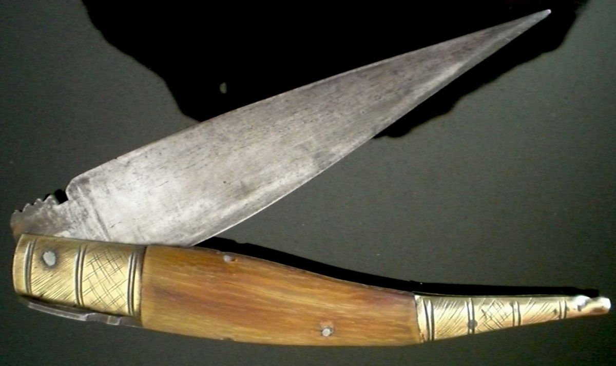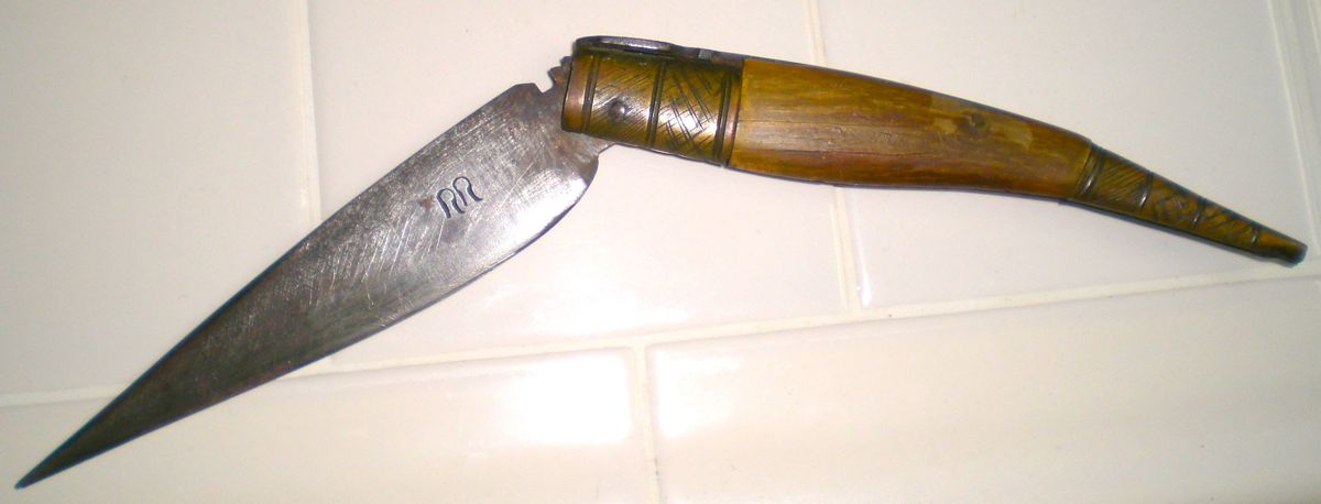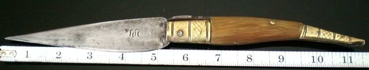 Handle material: unidentified blond horn.